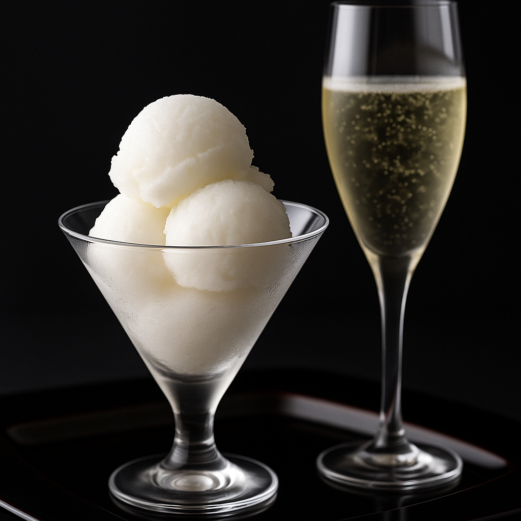 Effervescent and refined, Champagne Sorbet is a sparkling finish to a special dinner or a refreshing interlude between courses. The delicate flavor and light texture make it an ideal choice for celebrations or elegant entertaining. Serve it alongside fresh strawberries or in a chilled flute for a truly luxurious experience.