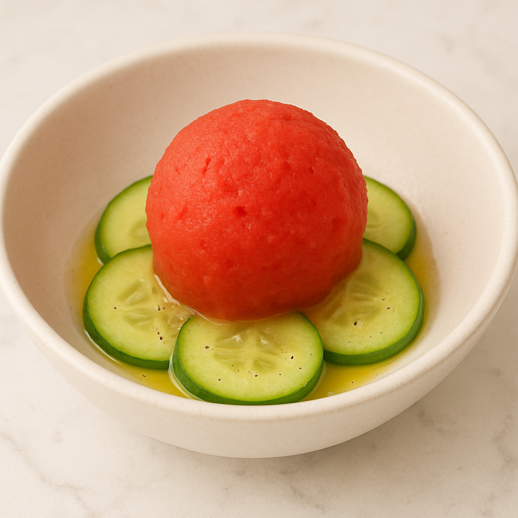 Serve small scoops of gazpacho sorbet in chilled bowls or martini glasses with a garnish of diced cucumber or a basil leaf. This sorbet also pairs beautifully with grilled seafood or as an amuse-bouche between courses.