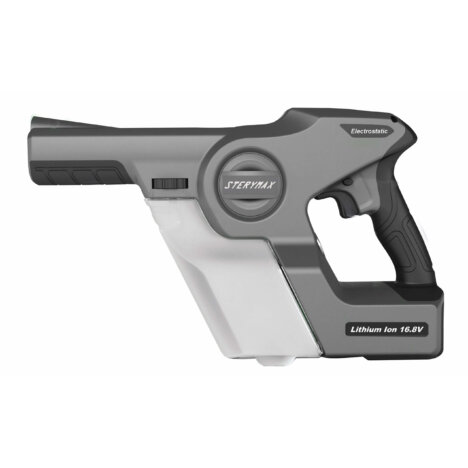 This hygienic product also offers 360° coverage thanks to our patented electrostatic technology that applies a double positive charge on the liquid. This positively charged liquid adheres to most surfaces as they are negatively and neutrally charged.