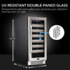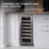 With an all-black cabinet, seamless stainless steel double-paned glass door, and sliding shelves, this wine refrigerator is as alluring as it is dependable. The seamless glass door and soft interior lighting turn your wine collection into a breathtaking display. With its front ventilation design, this unit is intended for built-in installation or simply as a free-standing unit.