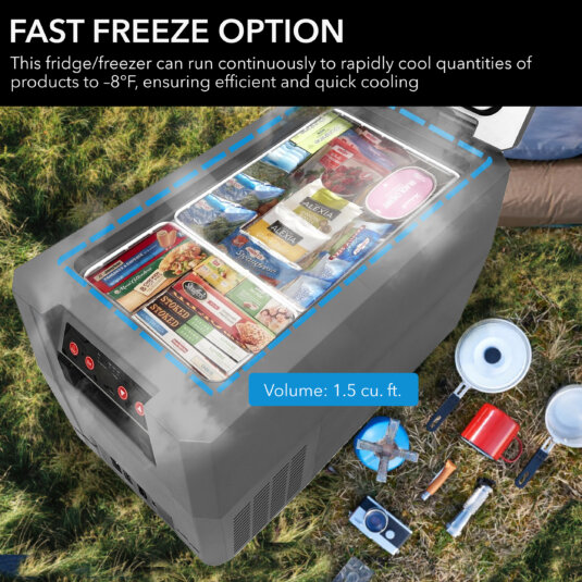 Whether on a day trip or major expedition, you can easily keep your food and beverages chilled, or frozen with this benchtop freezer. The Whynter portable freezers should not to be confused with less effective 12 volt novelty and beverage type “coolers”, the Whynter portable freezer fridge is a true freezer/refrigerator which cools between –8°F to 50°F. A cost effective and mobile solution for your recreational and critical freezing requirements.
