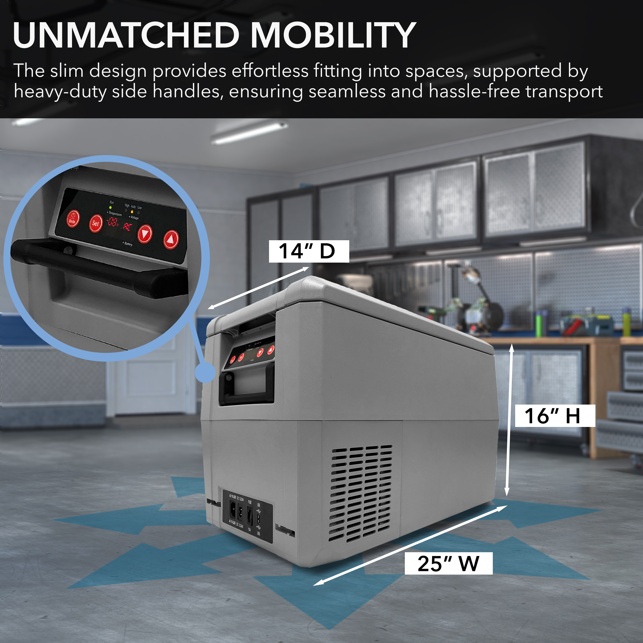 This Whynter Portable Fridge / Freezer offers premium quality and innovative design to your frozen/ refrigerated needs. This freezer is great for RVs, boats, campsites, fishing trips and truly portable so you can take your fridge / freezer anywhere! All you need is either a standard household 115 Volt outlet or a 12 Volt power source, like an automotive battery.