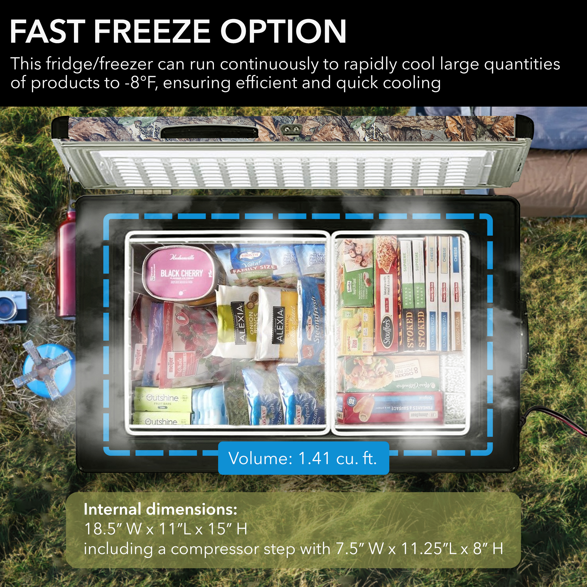 Take your drinks, meats or and other contents on the go with Whynter FM-45CAM 45-quart portable fridge/freezer. This special camouflage edition looks cool as it keeps your items cool (or frozen) in one premium and innovative design. It is perfect for RVs, boats, campsites, and fishing trips.