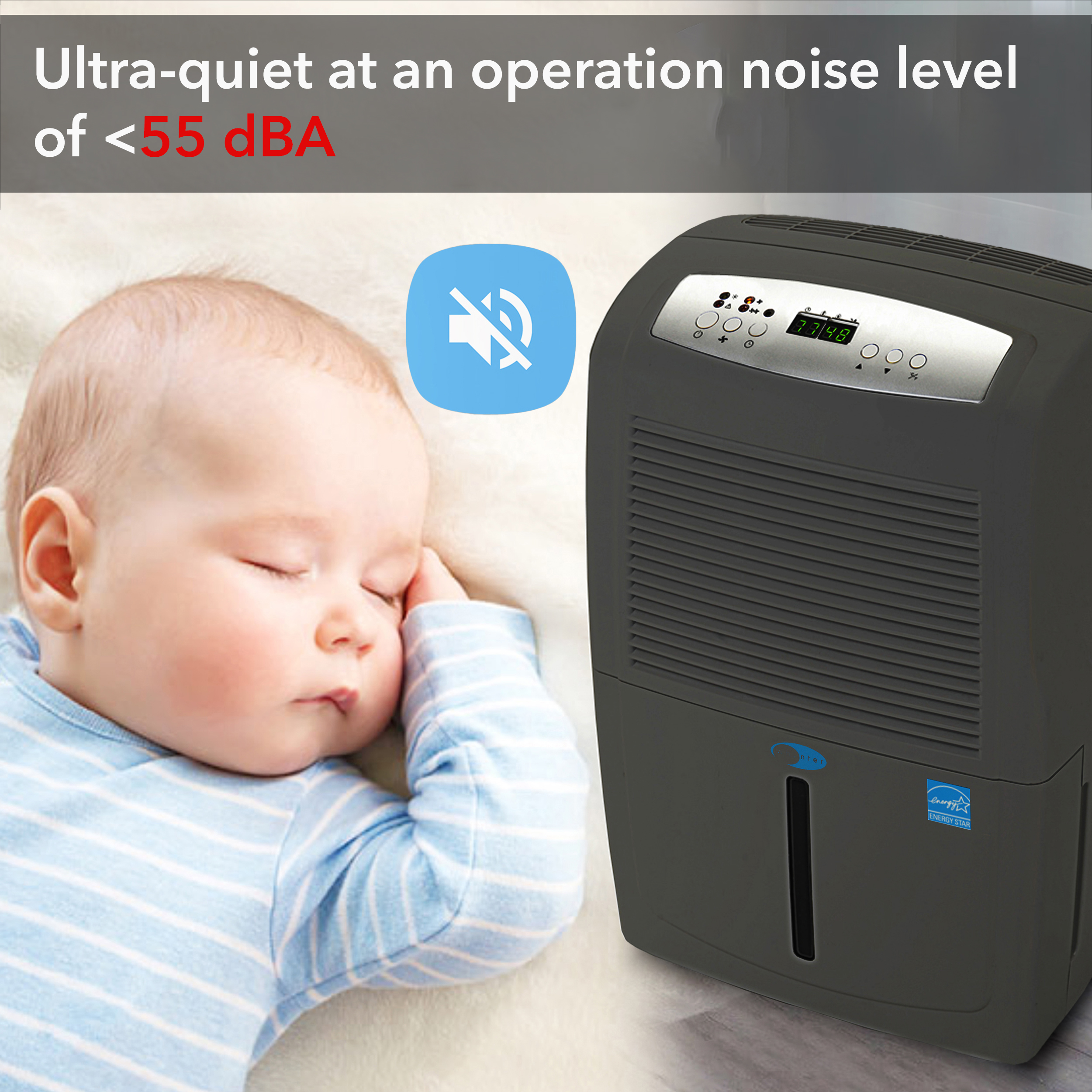 The stylish and powerful Whynter RPD-561EGP Energy Star 50 Pint Portable Dehumidifier with Built-in Pump is a high capacity unit with an impressive capability of removing up to 50 pints of moisture from the air per day. Featuring an internal condensate pump, this unit is specifically designed for high volume usage without having to worry about interrupted operation.
