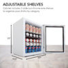 The stainless steel trimmed glass door and soft LED lighting allows you to see view the contents while maintaining internal temperatures and increasing energy efficiency. The Whynter 90 Can Stainless Steel Beverage Refrigerator is equipped with a lock to keep your beverages safe and secure. The door swing direction is also reversible for customization to your specific requirements.