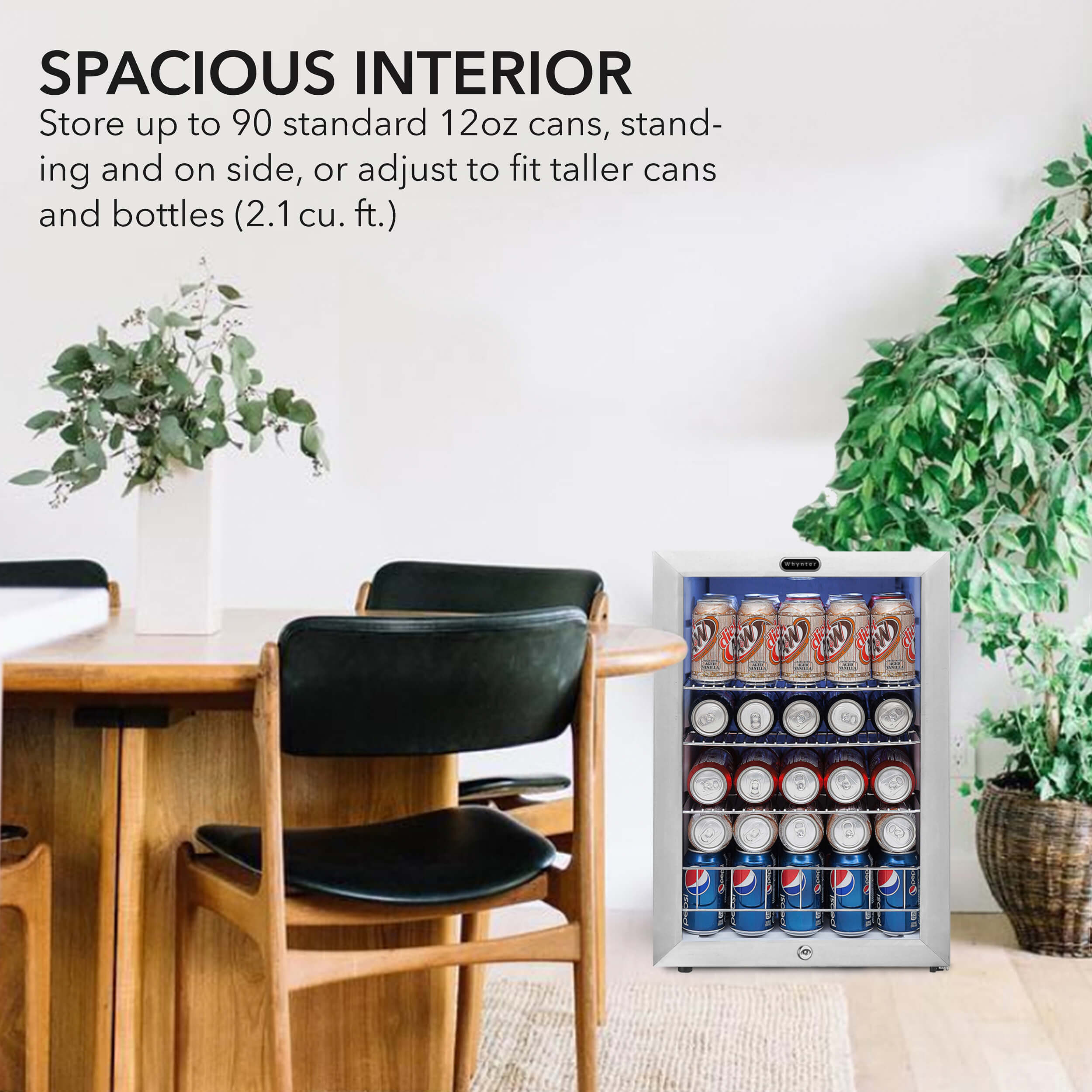 Unlike many budget beverage refrigerators, the Whynter 90 Can Stainless Steel Beverage Refrigerator utilizes premium features and design to provide a sleek showcase that will be centerpiece of any space. With its powerful compressor and internal air-cooled system, this beverage refrigerator creates an evenly-cooled space ensuring consistent temperatures throughout the beverage refrigerator.