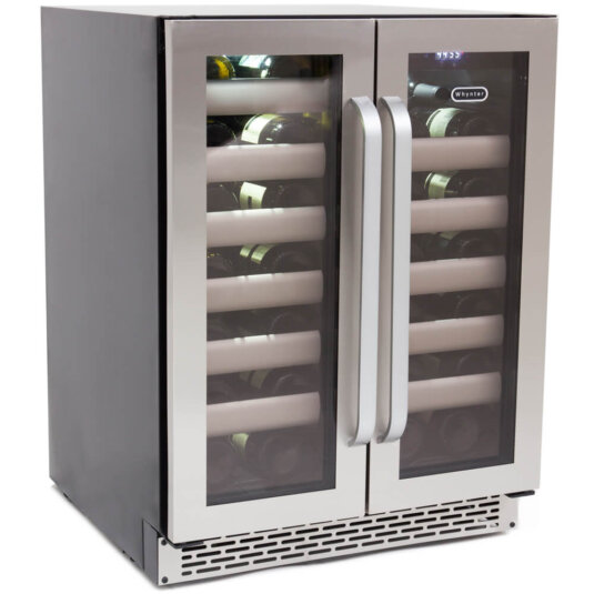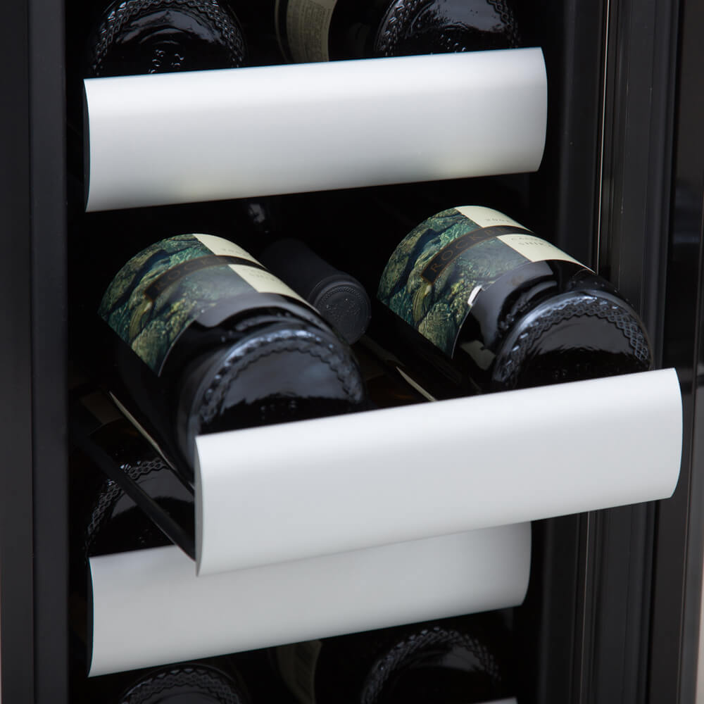 With an all-black cabinet, seamless stainless steel double-paned glass french door, and sliding shelves, this wine refrigerator is as alluring as it is dependable. The seamless glass door and soft interior lighting turn your wine collection into a breathtaking display. With its front ventilation design, this unit is intended for built-in installation or simply as a free-standing unit.