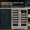 With an all-black cabinet, seamless stainless steel double-paned glass french door, and sliding shelves, this wine refrigerator is as alluring as it is dependable. The seamless glass door and soft interior lighting turn your wine collection into a breathtaking display. With its front ventilation design, this unit is intended for built-in installation or simply as a free-standing unit.
