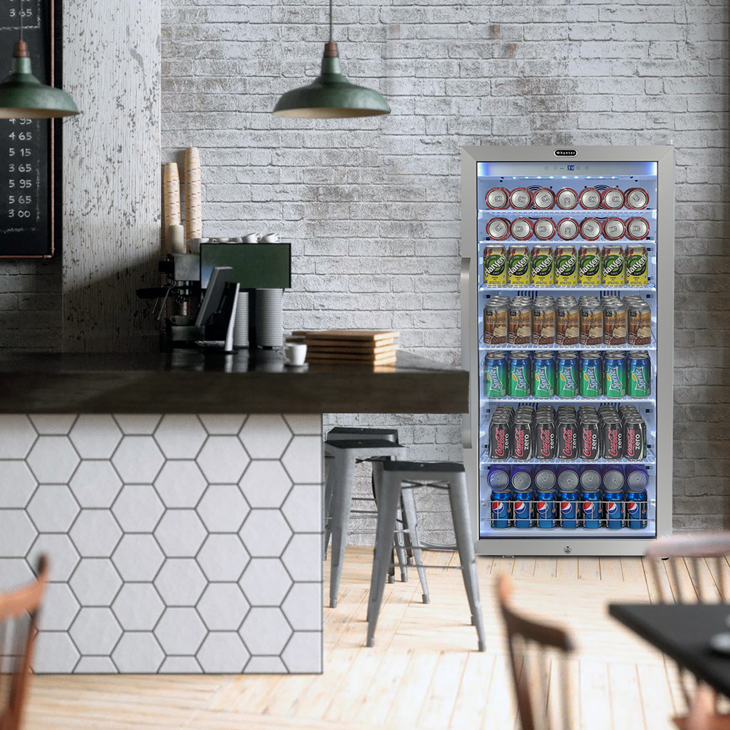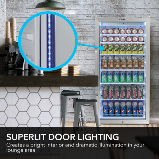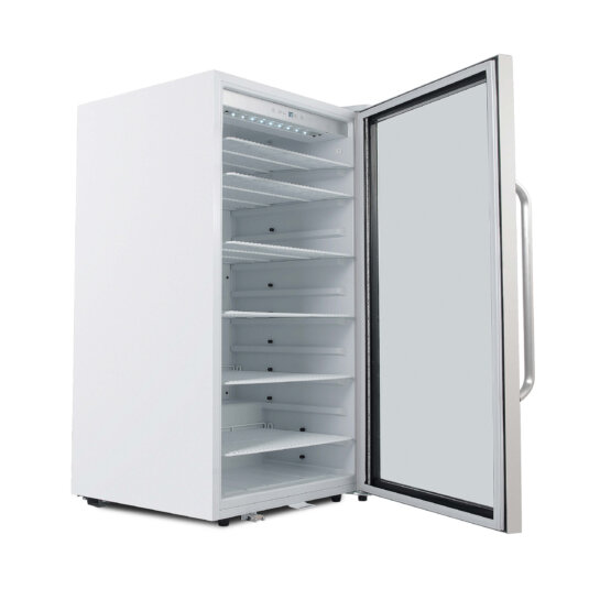 Efficient, classy, and reliable – those are just a few of the ways you can describe the Whynter CBM-1060XLW 10.6 cu ft refrigerator. This mini fridge with a glass door and LED lights offers powerful cooling and protection for your beverages and more. The CBM-1060XLW is the perfect addition to any home or commercial establishment for cooling and storing your favorite beers and canned beverages. Effortlessly control the interior energy-efficient LED soft light and temperature settings of your beverage refrigerator using the digital control panel. While the see-through tempered double pane glass door displays your beverage collection, the 10.6 cu ft refrigerator is also equipped with a super-lit door lighting strip to make it easy to find exactly what you are looking for.