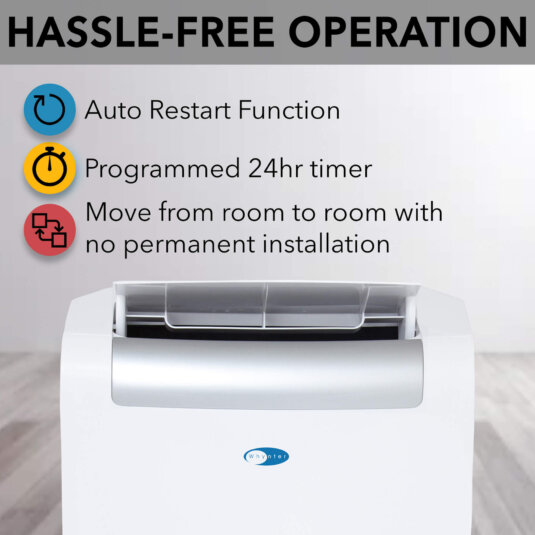Harness the power of versatile climate control with the Whynter ARC-148MHP 14,000 BTU (10,000 BTU SACC) Portable Air Conditioner. This advanced unit delivers cooling, heating, dehumidifying, and fan functions to maintain optimal comfort in spaces up to 500 sq. ft. The Activated Carbon and washable SilverShield Filter, paired with the Auto Drain Pump (heating mode only), ensures fresh, clean air while efficiently managing humidity levels. Choose Whynter, a trusted US-based brand since 2006, for high-performance, portable air conditioning and heating that delivers year-round climate control.