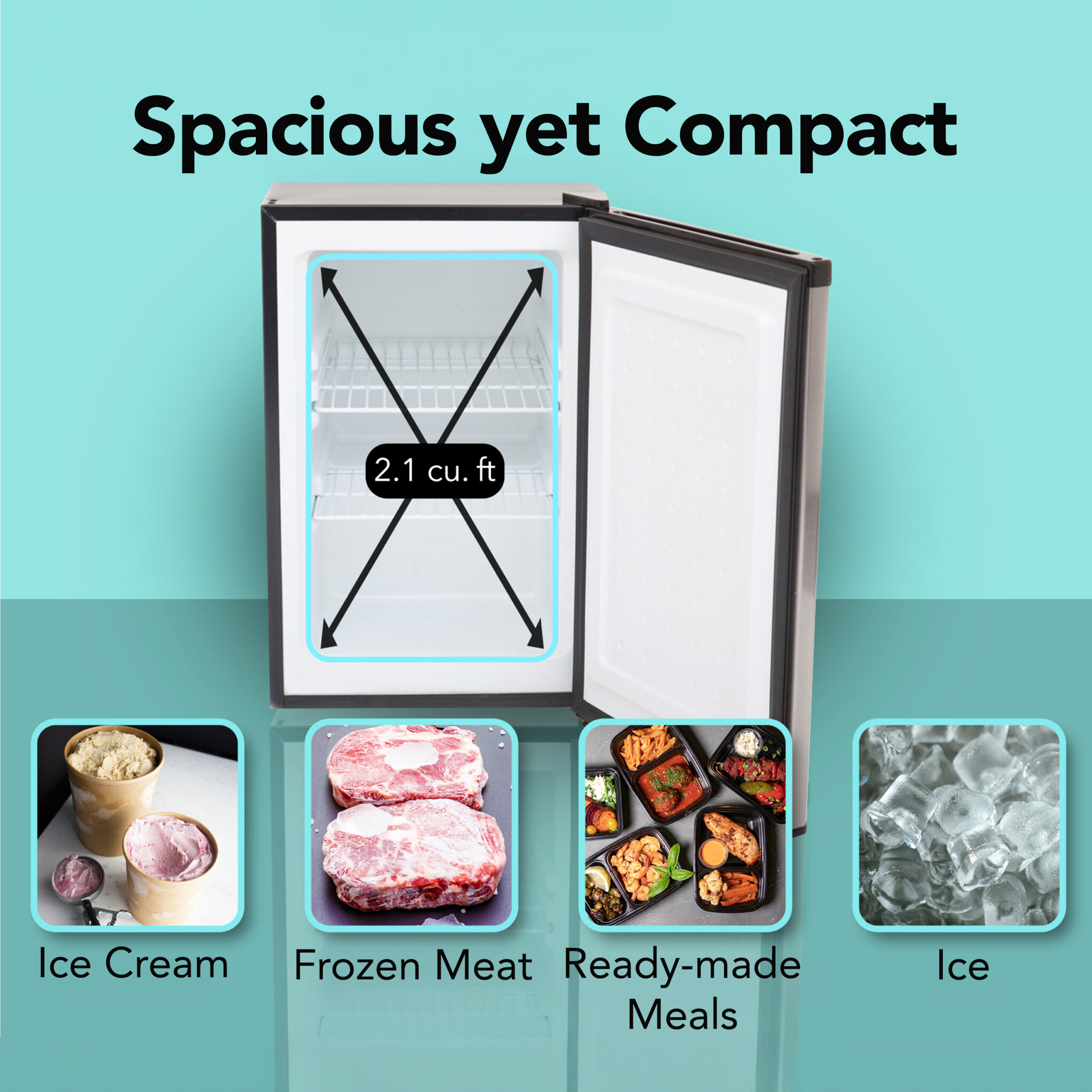 Ideal for any small space where cold storage is needed, the Whynter 2.1 cu. ft. upright freezer can also be used in the kitchen, offices, garages or basements. The Whynter 2.1 cu. ft. upright freezer features a stainless steel reversible-swing door, an adjustable thermostat, two removable shelves and a lock for securing the contents.