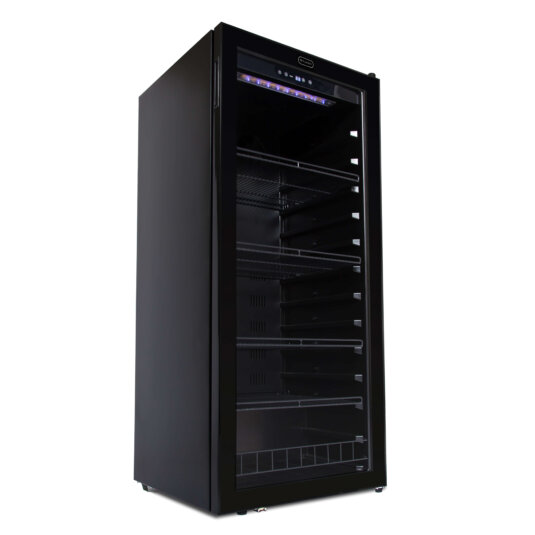 This Whynter single zone wine freestanding storage system can hold up to 124 standard 750ml wine bottles, an perfect storage and display unit for an expanding collection. Equipped with a strong fan-circulated cooling system and LED lighting the unit includes features to enhance your experience each time you reach for a bottle.