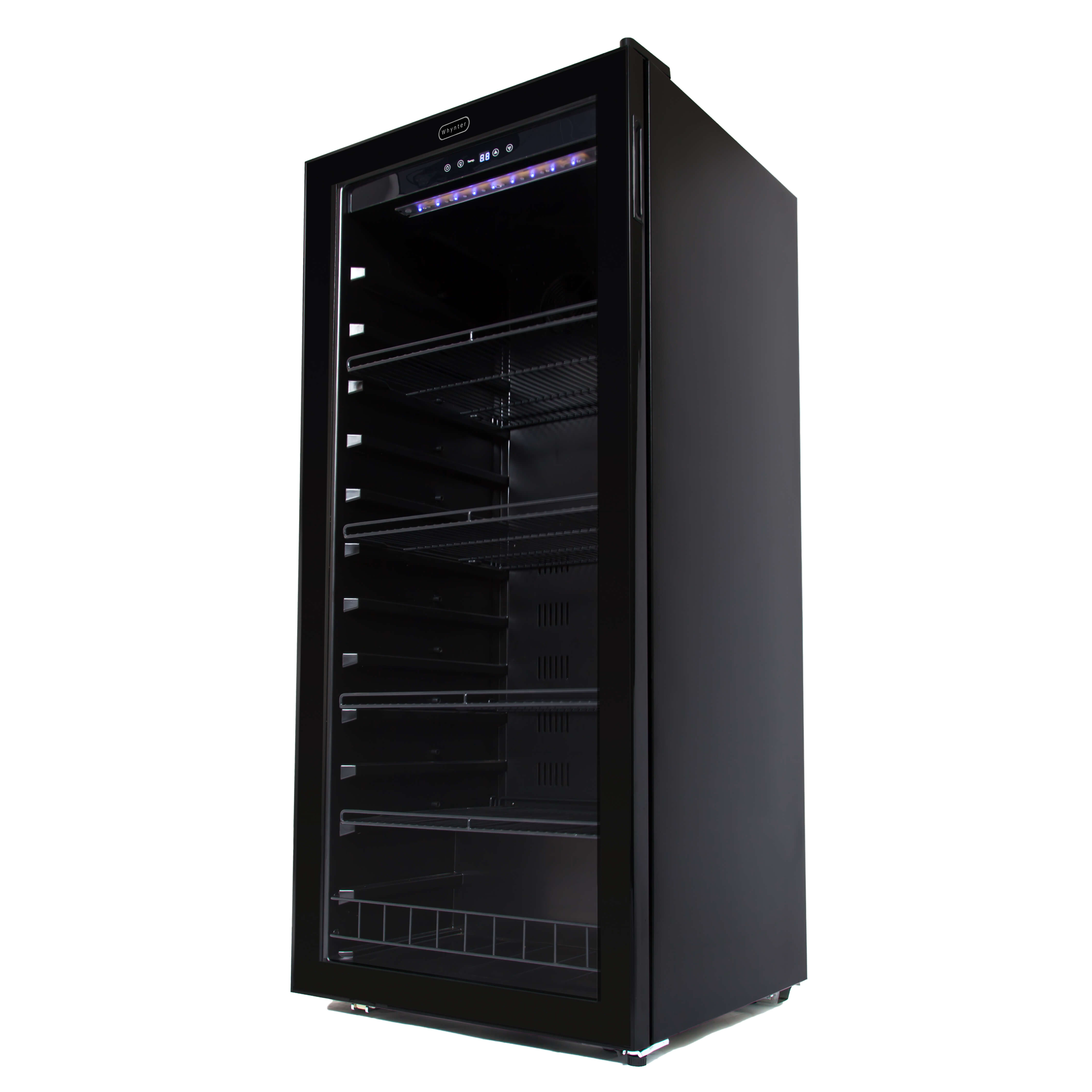This Whynter single zone wine freestanding storage system can hold up to 124 standard 750ml wine bottles, an perfect storage and display unit for an expanding collection. Equipped with a strong fan-circulated cooling system and LED lighting the unit includes features to enhance your experience each time you reach for a bottle.