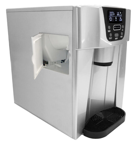 The compact self-contained design of the Whynter IDC-221SC ice maker and water dispenser gives any kitchen or workplace the convenience of dispensing ice and water from one system. In addition to efficiently making perfectly bullet-shaped ice cubes, this convenient 2-in-1 unit is able to make up to 26 lbs. of ice per day. This countertop ice maker can hold up to 2 liters of water with a built-in line to make filling easy. The water can then be dispensed cold (melted ice) or even at room temperature with a simple push of a button.
