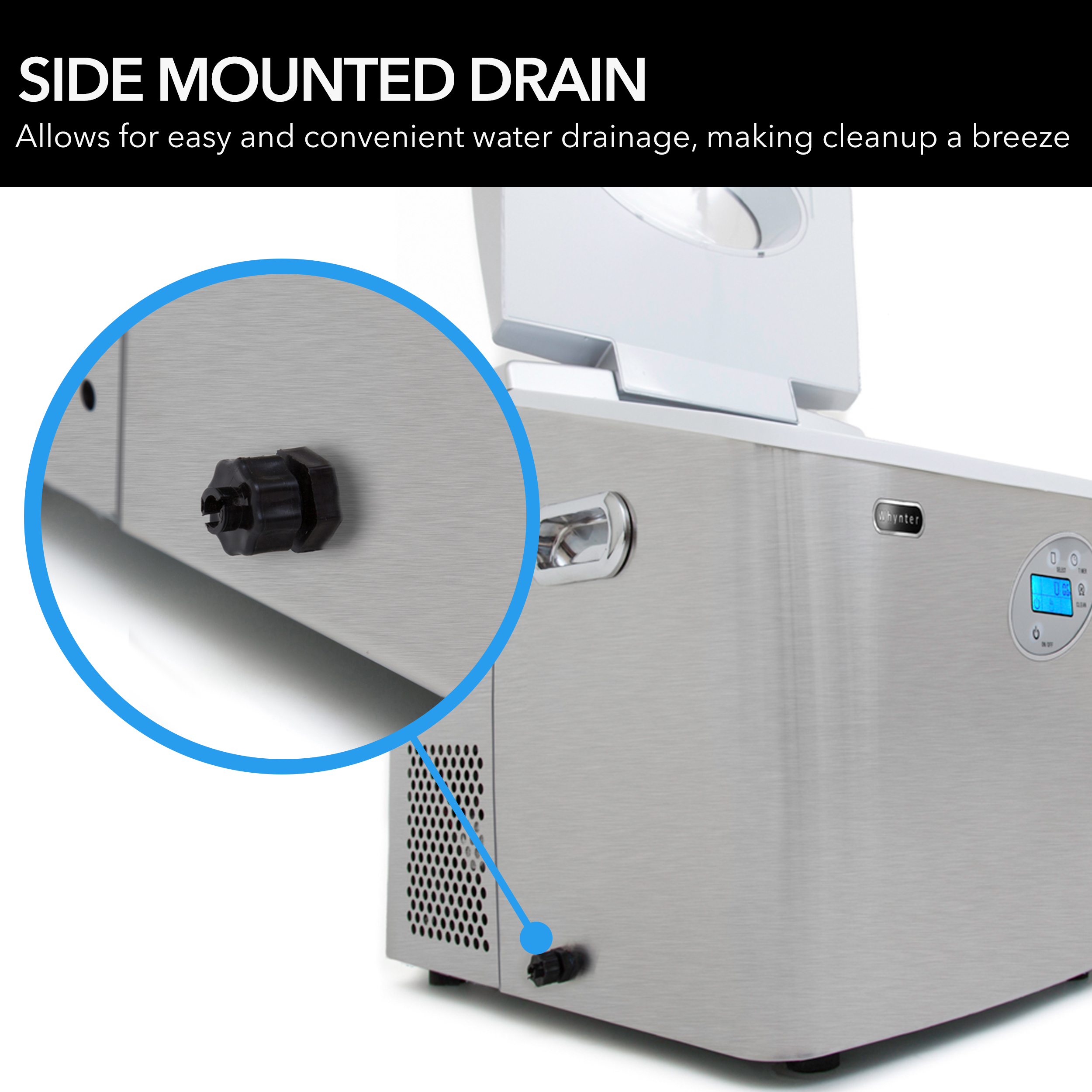 The Whynter IMC-490SS Portable Ice Maker is a premium stainless steel countertop ice maker use in your kitchen, home bar or office. In addition to quickly and efficiently making perfectly bullet-shaped ice cubes, the Whynter IMC-490SS Portable Ice Maker can produce up to 49 pounds of ice per day. You are also able to control and monitor the ice production on the LED display and soft-touch panel. This portable ice maker does not need direct plumbing. Simply fill the 5 liter reservoir with water, choose your ice size and watch the Whynter IMC-490SS Portable Ice Maker make your first batch in as little as 10 – 15 minutes.