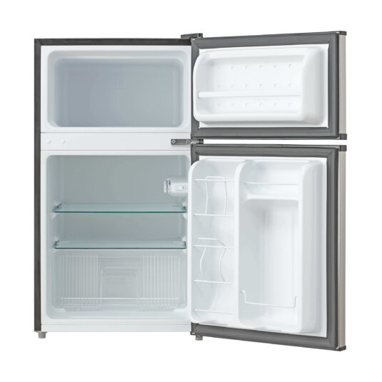Featuring an even larger interior capacity the Whynter MRF-340DS is ideal for workplace break rooms, dorm rooms, or an additional refrigerator for your entertainment space. The Whynter MRF-340DS Energy Star Stainless Steel Compact Refrigerator/Freezer can store both fresh or frozen food and beverages. With a roomy 3.4 cu. ft. of storage space, this space-saving unit is designed with a flat back, allowing it to fit cleanly against the wall or into corners. It comes with added enhancements such as a bottle and can storage compartment on door, low noise level, and adjustable thermostat.