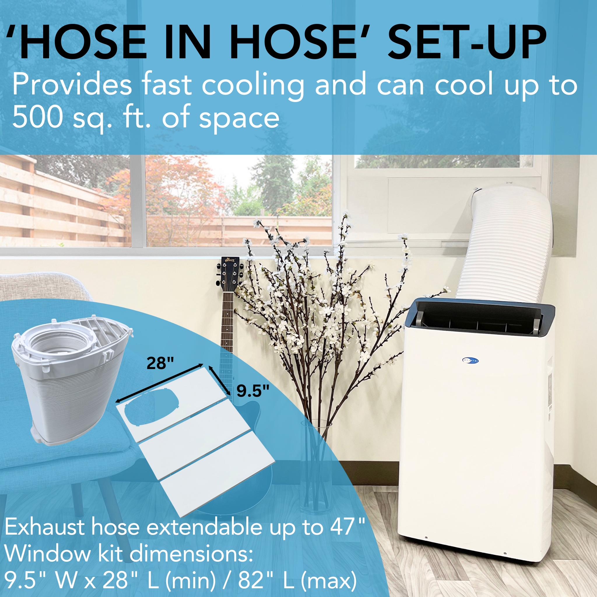 Move your 12,000 BTU portable air conditioner anywhere with the 4-wheel design and handles. The portable AC with Wi-Fi is easy to set up in most vertical or horizontal windows with the convenient snap-together window kit that is included with every unit.