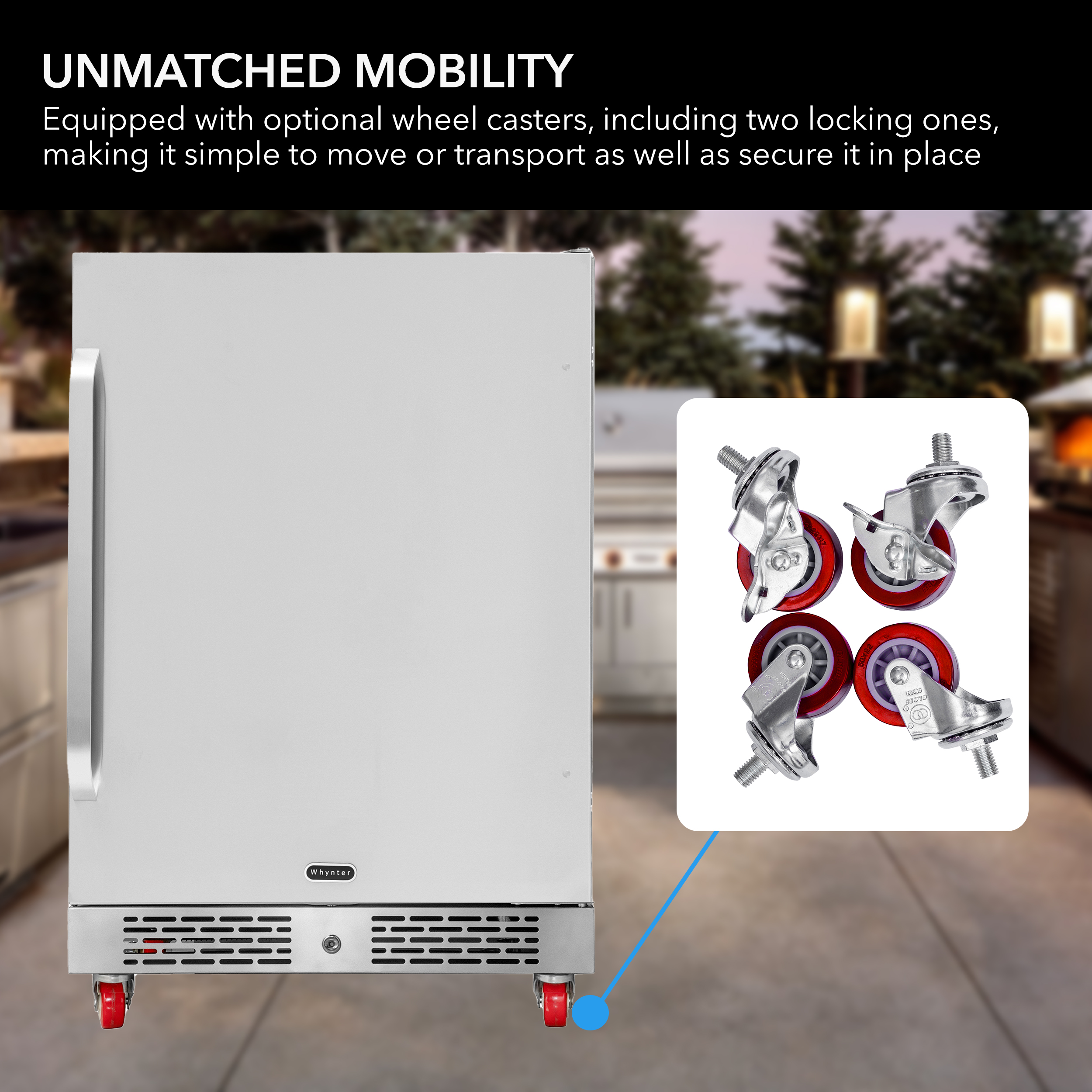 Looking for convenience and cooling in one built-in package? Our BOR-53024 stainless steel cooler with wheels works well both indoors and outside, with a great capacity for all your regular and entertaining needs. This built-in stainless steel refrigerator includes a lock and optional caster wheels.