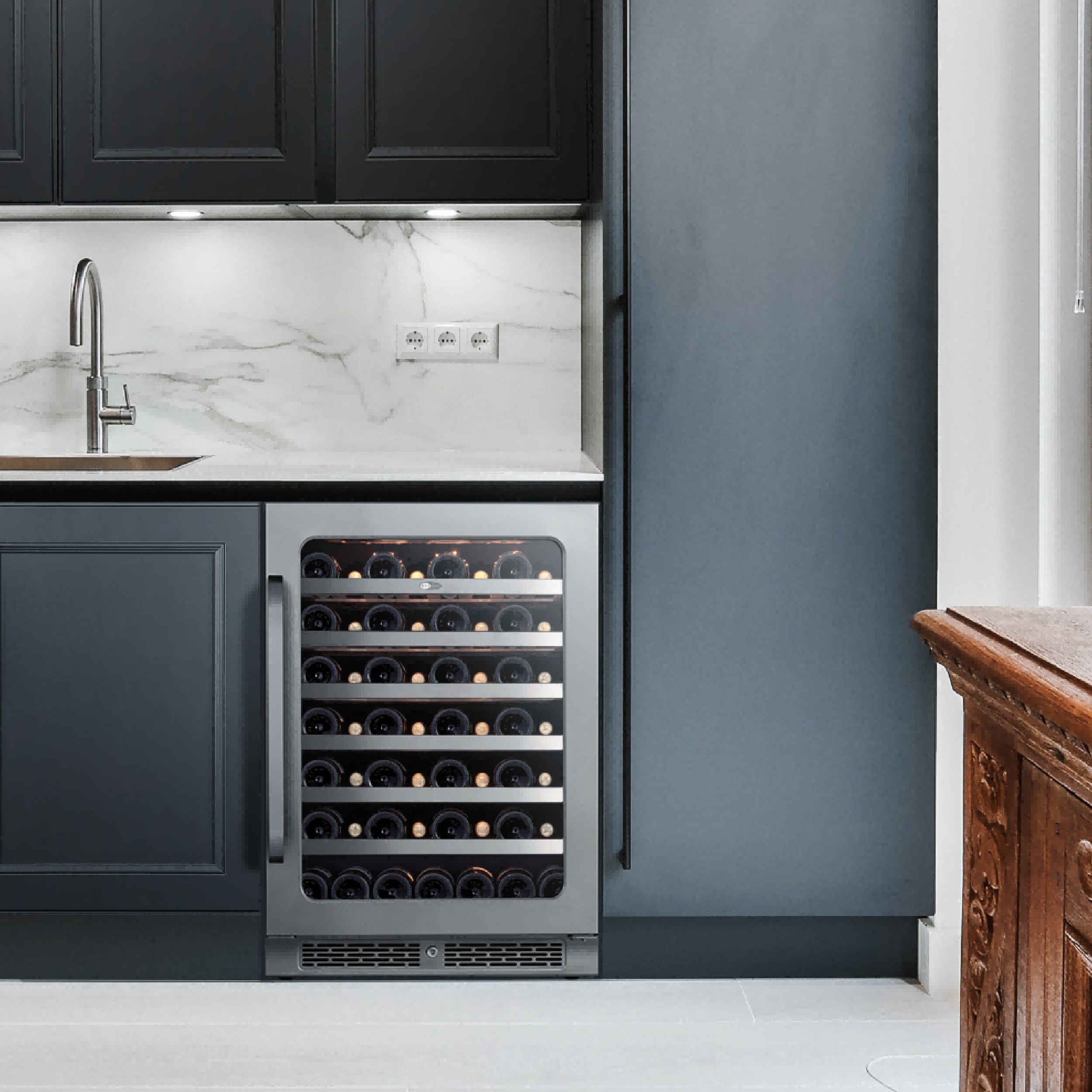 Accommodates up to 54 standard 750 mL bottles.